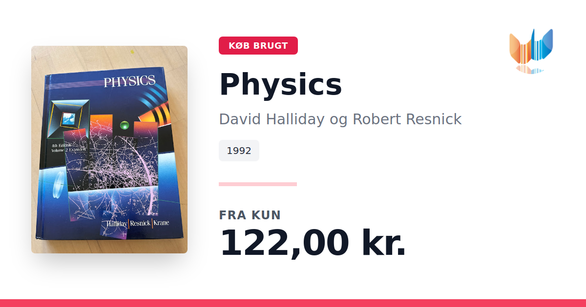 Lige nu kan du købe "Physics" af David Halliday og Robert Resnick til kun 122,00 kr. Bogen du ser her er brugt, og i god stand. Vi har i øjeblikket kun et enkelt eksemplar til salg af "Physics", så slå til mens du kan!