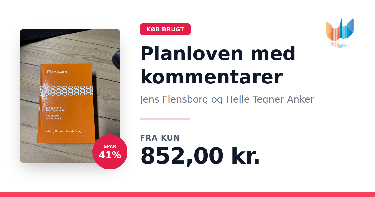 Lige nu kan du købe "Planloven med kommentarer" af Jens Flensborg og Helle Tegner Anker til kun 852,00 kr. Du sparer hele 41% af nyprisen! Bogen du ser her er brugt, og i perfekt stand. Vi har i øjeblikket kun et enkelt eksemplar til salg af "Planloven med kommentarer", så slå til mens du kan!