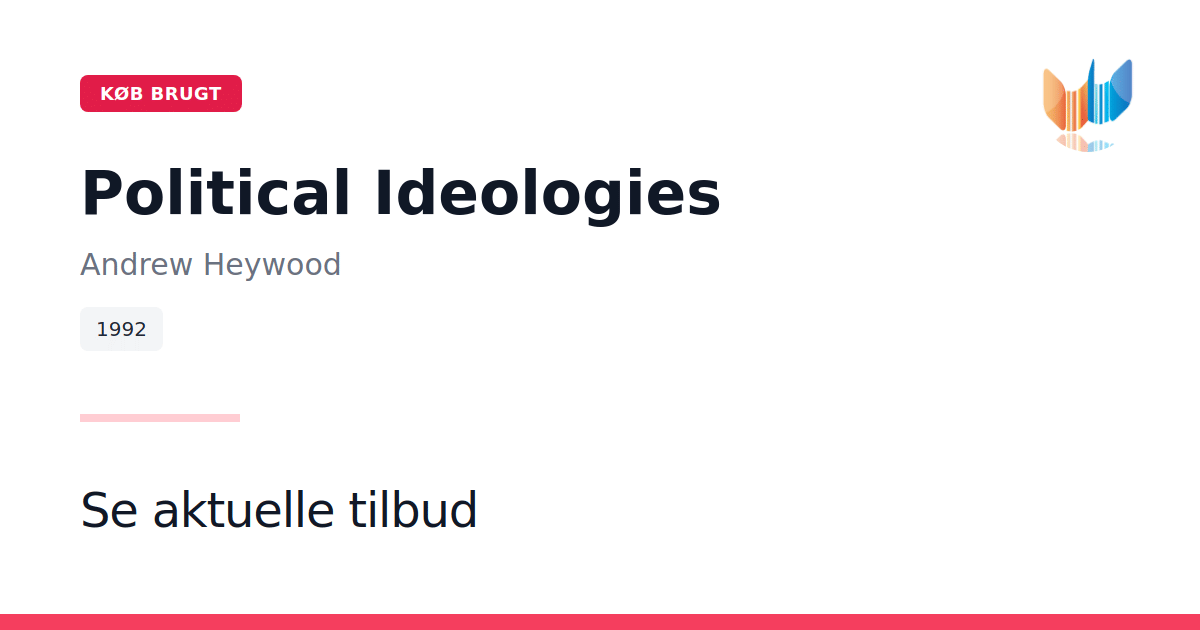 Den reviderede og opdaterede udgave af Andrew Heywoods anerkendte grundbog Political Ideologies: An Introduction giver et indgående overblik over ideologiernes rødder, kernebegreber og historiske udvikling. Heywood rejser centrale spørgsmål om, hvordan idéerne former politiske systemer og fællesskaber. Bogen indeholder et nyt kapitel om multikulturalisme, diskuterer overgangen fra traditionelle til såkaldte "nye" ideologier og belyser, hvordan globalisering og krigen mod terror har påvirket de store ideologiske traditioner. Med sine 376 sider er bogen en uundværlig indføring for studerende og alle med interesse for det politiske landskab.