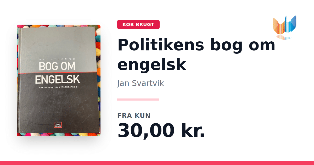 Lige nu kan du købe "Politikens bog om engelsk" af Jan Svartvik til kun 30,00 kr. Bogen du ser her er brugt, og i god stand. Vi har i øjeblikket kun et enkelt eksemplar til salg af "Politikens bog om engelsk", så slå til mens du kan!