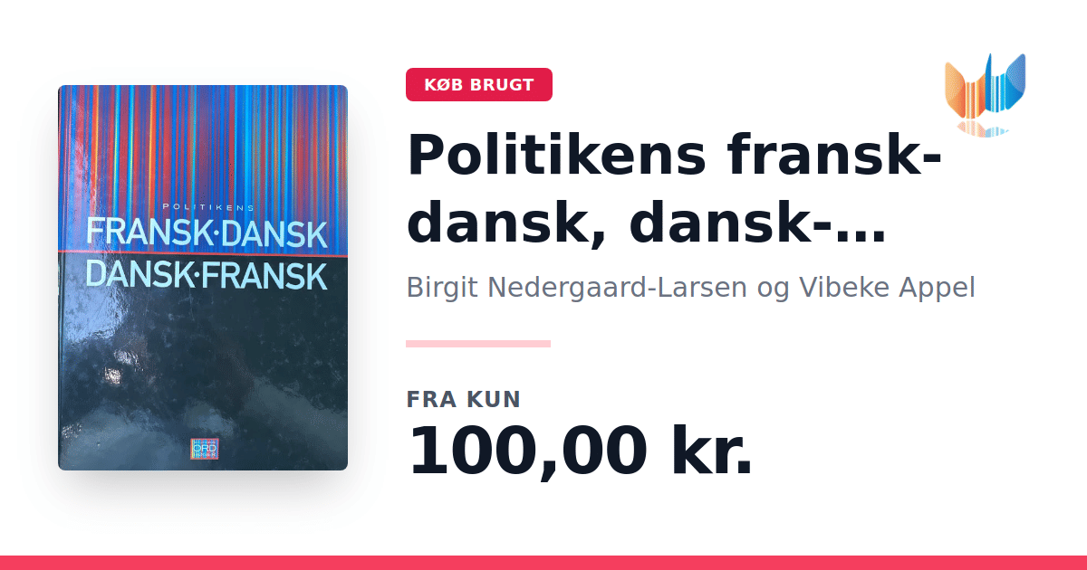 Lige nu kan du købe "Politikens fransk-dansk, dansk-fransk" af Birgit Nedergaard-Larsen og Vibeke Appel til kun 100,00 kr. Bogen du ser her er brugt, og i perfekt stand. Vi har i øjeblikket kun et enkelt eksemplar til salg af "Politikens fransk-dansk, dansk-fransk", så slå til mens du kan!