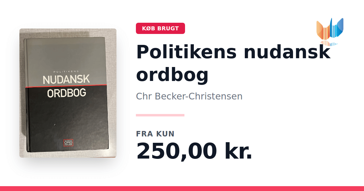 Lige nu kan du købe "Politikens nudansk ordbog" af Chr Becker-Christensen til kun 250,00 kr. Bogen du ser her er brugt, og i god stand. Vi har i øjeblikket 2 eksemplarer til salg af "Politikens Nudansk ordbog", så husk at se de forskellige udgaver.
