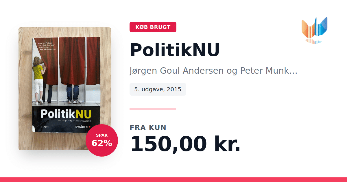 PolitikNU formidler på en overskuelig måde, hvordan holdninger, magt og politiske systemer spiller sammen i praksis. Med eksempler fra den nyeste forskning og et solidt teoretisk grundlag, præsenteres de centrale begreber og teorier, så de bliver relevante i forhold til aktuelle politiske udviklinger. Bogen afsluttes med et praktisk kapitel med en manual, der guider læseren i, hvordan man kan analysere politik i praksis. Tekster, opgaver, interaktive øvelser og videoer med nøgleaktører fra dansk politik gør hver side levende og nærværende. I denne 5. udgave af PolitikNU, udgivet af Systime i 2015 og forfattet af Jørgen Goul Andersen, er der lagt vægt på at gøre indholdet kortfattet, præcist og visuelt understøttet med flere illustrationer. Denne opdaterede version er designet til at lette undervisningen og styrke forståelsen af politik.