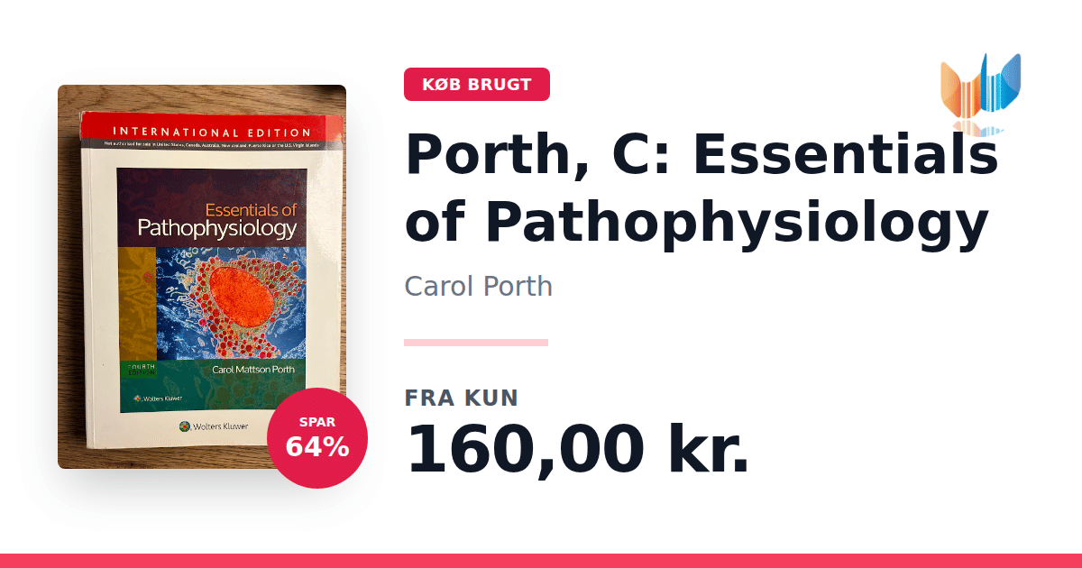 Essentials of Pathophysiology, 4. udgave (2014) af Carol Porth, udgivet af Lippincott Williams & Wilkins, er en grundbog for sygeplejersker, PA-studerende, farmakologistuderende og andre sundhedsprofessionelle. Bogen kombinerer videnskabelige grundprincipper med sygdomsprocesser og giver en klar og læsevenlig introduktion til, hvordan normale fysiologiske funktioner ændres ved patologiske tilstande. Hvert kapitel indledes med klare læringsmål og afsluttes med oversigtsbokse, der samler de centrale begreber. "Understanding"-funktionen guider læseren gennem komplekse processer, mens artworket er opdateret og forbedret i denne fjerde udgave, så det visuelt understøtter de vigtigste pointer. Til de studerende er der en fuldt søgbar e-bog, mere end 40 avancerede 3D-animationer med oplæsning, et spansk-engelsk lydglossar samt monografier over hyppigt ordinerede lægemidler. Desuden medfølger journalartikler, 600 NCLEX-lignende spørgsmål og et regne- og dosisregningsmodul til at styrke både teoretisk viden og praktiske færdigheder. Underviserne får adgang til omfattende PowerPoint-slides, guidede forelæsningsnoter, diskussionsemner, opgaver med facit, casestudier, journalsamling, prøvelæsningsquizzer og en QSEN-kortlægning, der sikrer sammenhæng mellem teoretisk undervisning og klinisk praksis.