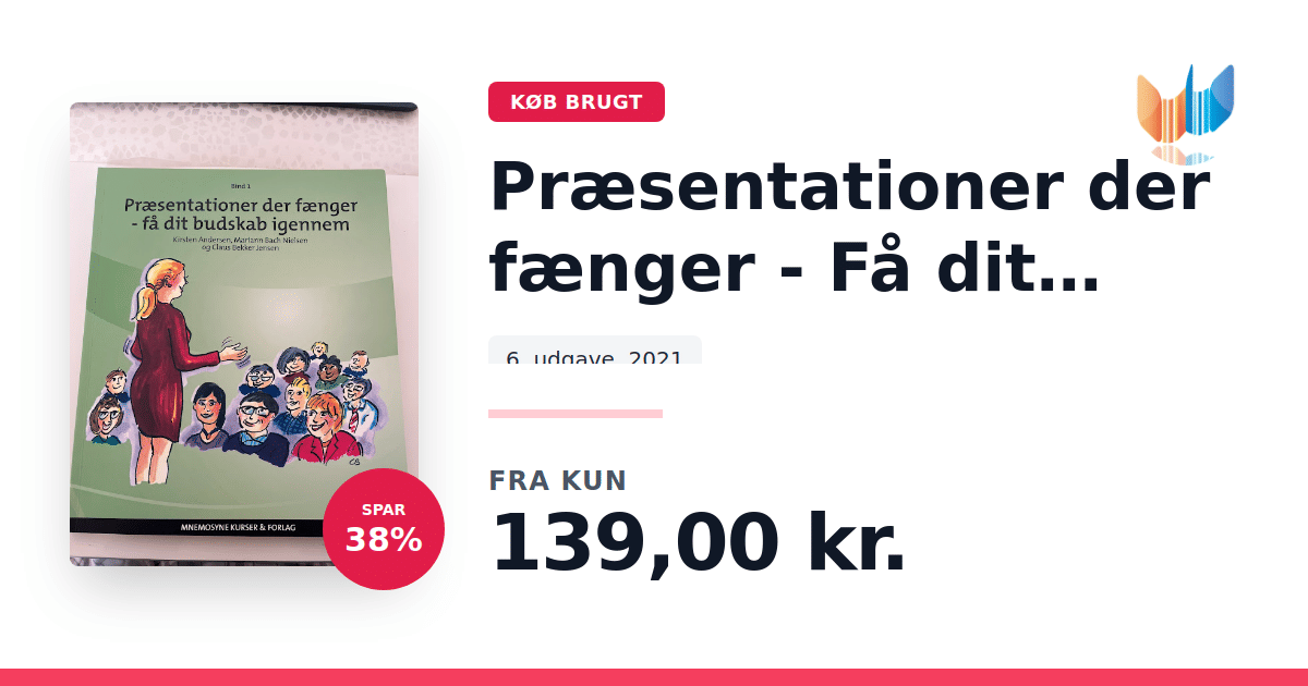 Har du nogensinde undret dig over, hvorfor nogle formidlere formår at engagere og begejstre deres tilhørere, mens andre blot forsvinder i mængden? I denne sjette udgave af Præsentationer der fænger – Få dit budskab igennem præsenteres konkrete redskaber og inspirationskilder, der hjælper dig med at gøre netop din præsentation uforglemmelig. Bogen guider dig igennem processen med at: • kortlægge målgruppens behov og skabe en relevant forbindelse • udvikle kreative idéer, der vækker interesse og nysgerrighed • opbygge en klar argumentation, så dit budskab fremstår overbevisende • forme talervenlige manuskripter og engagerende oplæg Med 160 sider fyldt med praktiske råd og letforståelige øvelser er denne udgave et uundværligt værktøj for enhver, der ønsker at stå stærkt foran sit publikum og skabe en præsentation, der virkelig rammer plet.