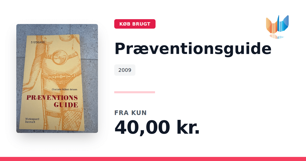 Lige nu kan du købe "Præventionsguide" til kun 40,00 kr. Bogen du ser her er brugt, og i god stand. Vi har i øjeblikket kun et enkelt eksemplar til salg af "Præventionsguide", så slå til mens du kan!