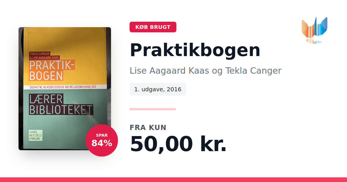 Lige nu kan du købe "Praktikbogen" af Lise Aagaard Kaas og Tekla Canger til kun 50,00 kr. Du sparer hele 84% af nyprisen! Bogen du ser her er brugt, og i perfekt stand. Vi har i øjeblikket 3 eksemplarer til salg af "Praktikbogen", så husk at se de forskellige udgaver.