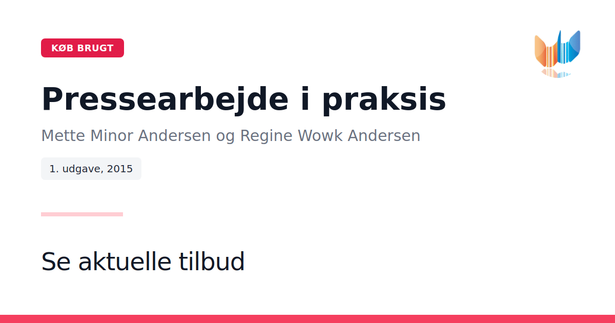 Pressearbejde er ikke noget, man kan læres fra bøger – det er noget, man tilegner sig gennem erfaring. I "Pressearbejde i praksis" deler to dygtige og erfarne kommunikatører deres bedste råd og tips, som de selv ville ønske, de havde modtaget i starten af deres karriere. Bogen er et værdifuldt redskab for alle, der fra tid til anden skal håndtere pressen. Med konkrete eksempler og praktisk vejledning forklarer Mette Minor Andersen og Regine Wowk Andersen, hvordan man bedst skaber forståelse hos både journalister og ledere. Bogen belyser, hvorfor det kan være en udfordring at fange journalistens interesse og giver samtidig tips til, hvordan du kan formidle din historie på en effektiv måde. Uanset om du har pressearbejde som en central del af din rolle eller blot en sporadisk opgave, finder du her en inspirerende og håndgribelig guide til din hverdag.