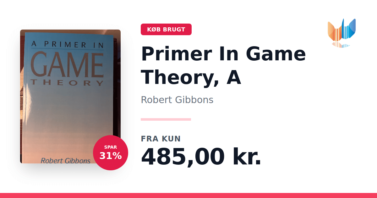 Lige nu kan du købe "Primer In Game Theory, A" af Robert Gibbons til kun 485,00 kr. Du sparer hele 31% af nyprisen! Bogen du ser her er brugt, og i perfekt stand. Vi har i øjeblikket kun et enkelt eksemplar til salg af "Primer In Game Theory, A", så slå til mens du kan!