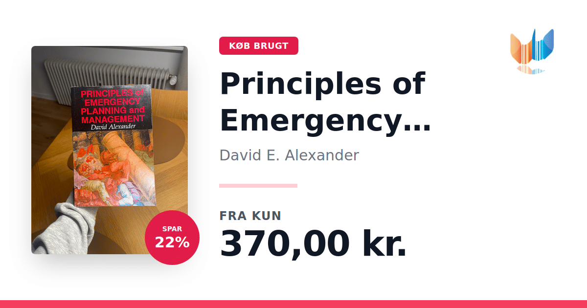 Lige nu kan du købe "Principles of Emergency Planning and Management" af David E. Alexander til kun 370,00 kr. Du sparer hele 22% af nyprisen! Bogen du ser her er brugt, og i perfekt stand. Vi har i øjeblikket kun et enkelt eksemplar til salg af "Principles of Emergency Planning and Management", så slå til mens du kan!