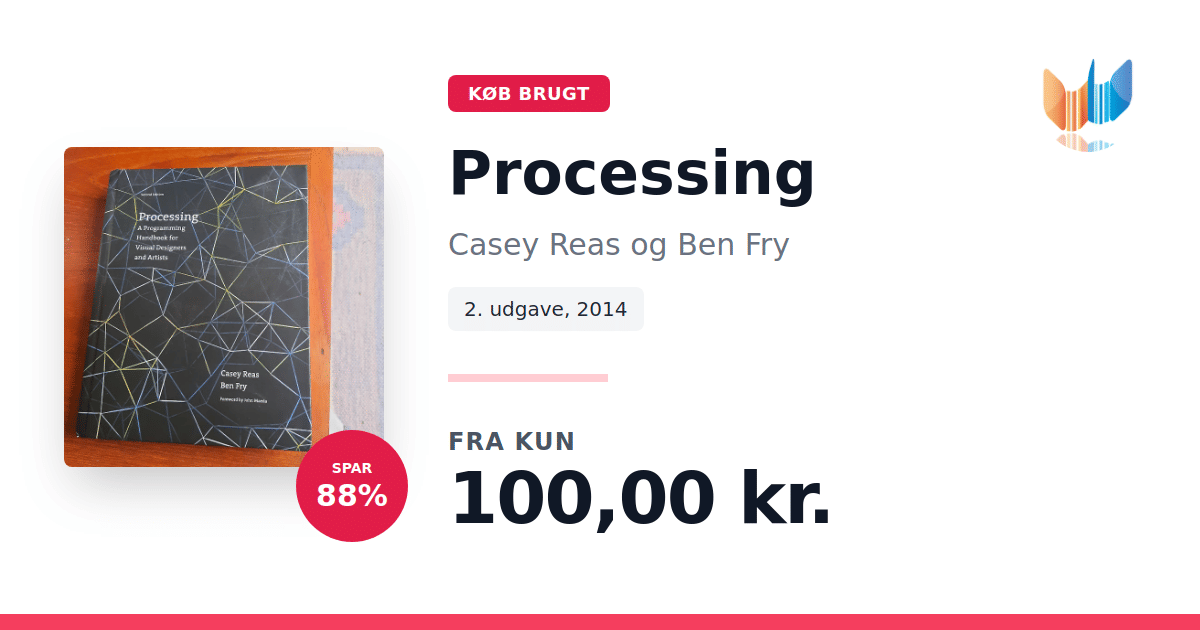 Lige nu kan du købe "Processing" af Casey Reas og Ben Fry til kun 100,00 kr. Du sparer hele 88% af nyprisen! Bogen du ser her er brugt, og i perfekt stand. Vi har i øjeblikket kun et enkelt eksemplar til salg af "Processing", så slå til mens du kan!