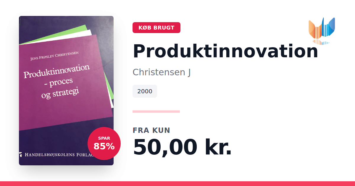 Lige nu kan du købe "Produktinnovation" af Christensen J til kun 50,00 kr. Du sparer hele 85% af nyprisen! Bogen du ser her er brugt, og i perfekt stand. Vi har i øjeblikket kun et enkelt eksemplar til salg af "Produktinnovation", så slå til mens du kan!