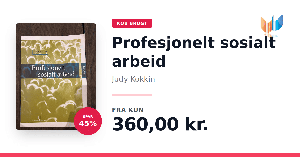 Lige nu kan du købe "Profesjonelt sosialt arbeid" af Judy Kokkin til kun 360,00 kr. Du sparer hele 45% af nyprisen! Bogen du ser her er brugt, og i god stand. Vi har i øjeblikket 2 eksemplarer til salg af "Profesjonelt sosialt arbeid", så husk at se de forskellige udgaver.
