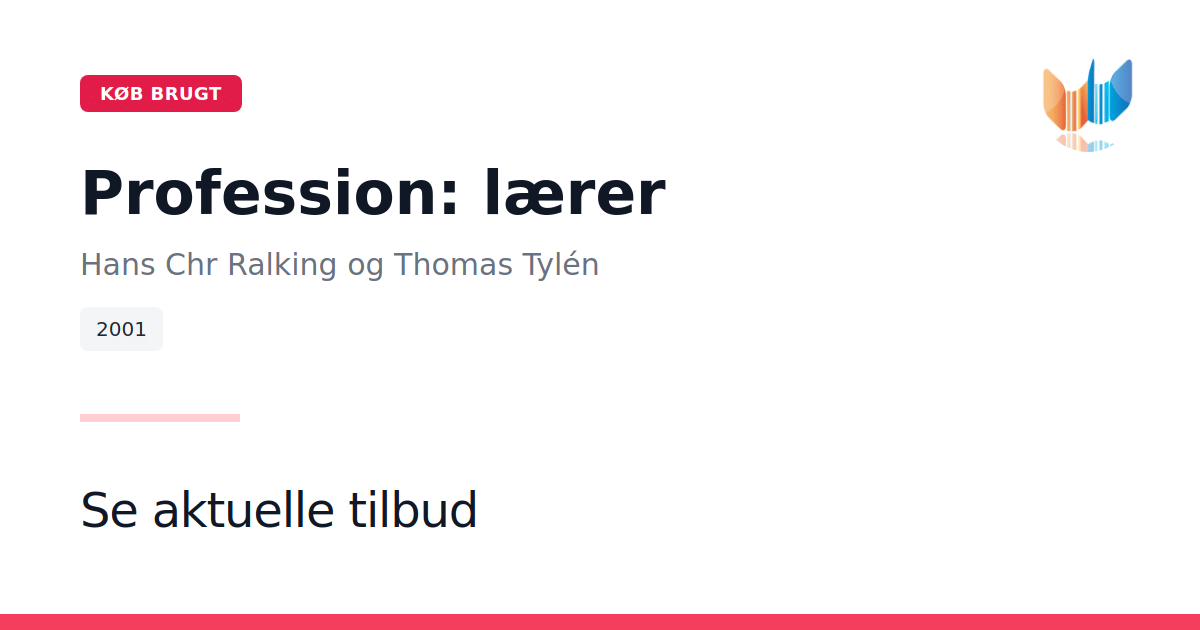 "Profession: lærer" tilbyder et nuanceret indblik i centrale pædagogiske problemstillinger og lærerprofessionens mange facetter. Bogen formidler både konkrete perspektiver på specifikke uddannelsesmæssige dilemmaer og et overordnet billede af de pædagogiske emner, som præger undervisningslivet. Med bidrag fra Hans Chr Ralking, Thomas Tylén og Erik B. Yde er denne paperback, udgivet i 2001, et værdifuldt redskab til dem, der ønsker at udforske og forstå de krav og muligheder, der følger med at være lærer.