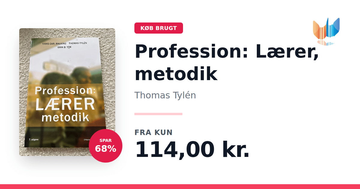 Lige nu kan du købe "Profession: Lærer, metodik" af Thomas Tylén til kun 114,00 kr. Du sparer hele 68% af nyprisen! Bogen du ser her er brugt, og i god stand. Vi har i øjeblikket 2 eksemplarer til salg af "Profession: lærer, Metodik", så husk at se de forskellige udgaver.