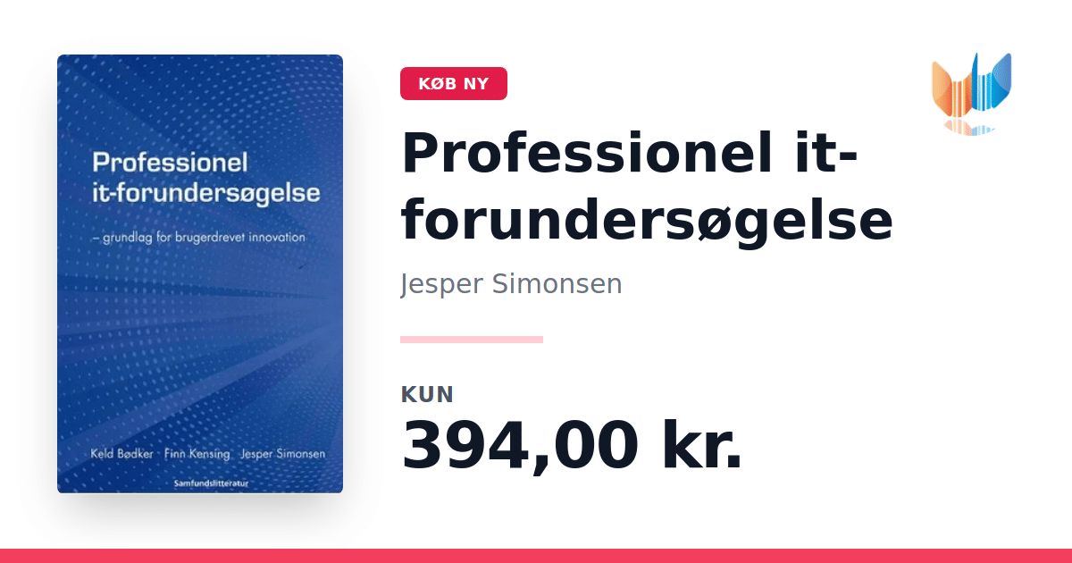 I "Professionel it-forundersøgelse" præsenterer Jesper Simonsen en struktureret tilgang til hele forundersøgelsesprocessen – fra den allerførste idé om forandring til udarbejdelsen af en gennemarbejdet vision, der danner fundamentet for en vellykket udbudsforretning. Bogen, udgivet af Samfundslitteratur i 2008, introducerer den velafprøvede "MUST-metode", der over et årti er blevet udviklet og tilpasset i tæt samarbejde med både danske og amerikanske virksomheder. Med et klart fokus på både ledelsens og de ansattes aktive inddragelse, tilbyder bogen en række simple, men effektive teknikker og beskrivelsesværktøjer, der kan anvendes af såvel erfarne IT-praktikere som dem, der er nye på området. Metoden dækker alle relevante aspekter af en IT-forundersøgelse og sikrer bedre forankring af visionerne ved at inddrage brugernes førstehåndsindsigt i deres arbejdspraksis. Desuden giver bogen konkrete redskaber til, hvordan projektlederen kan planlægge og styre forundersøgelsen hensigtsmæssigt og struktureret – en tilgang, der bryder med tidligere metoders store afhængighed af detaljerede specifikationer. "Professionel it-forundersøgelse" fungerer derfor både som en inspirerende metodisk grundbog og et praktisk værktøj for dem, der ønsker at se IT-projekter i et forretningsorienteret lys.