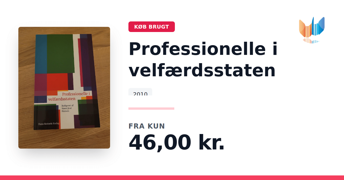 Lige nu kan du købe "Professionelle i velfærdsstaten" til kun 46,00 kr. Bogen du ser her er brugt, og i god stand. Vi har i øjeblikket 3 eksemplarer til salg af "Professionelle i velfærdsstaten", så husk at se de forskellige udgaver.