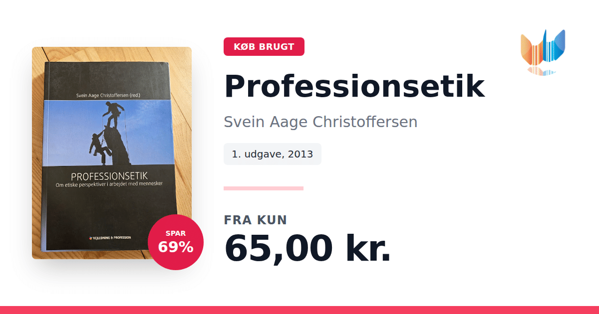 Lige nu kan du købe "Professionsetik" af Svein Aage Christoffersen til kun 65,00 kr. Du sparer hele 69% af nyprisen! Bogen du ser her er brugt, og i perfekt stand. Vi har i øjeblikket kun et enkelt eksemplar til salg af "Professionsetik", så slå til mens du kan!