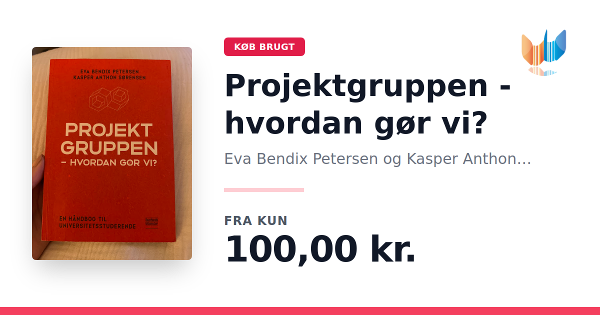 Lige nu kan du købe "Projektgruppen - hvordan gør vi?" af Eva Bendix Petersen og Kasper Anthon Sørensen til kun 100,00 kr. Bogen du ser her er brugt, og i perfekt stand. Vi har i øjeblikket 2 eksemplarer til salg af "Projektgruppen - hvordan gør vi?", så husk at se de forskellige udgaver.