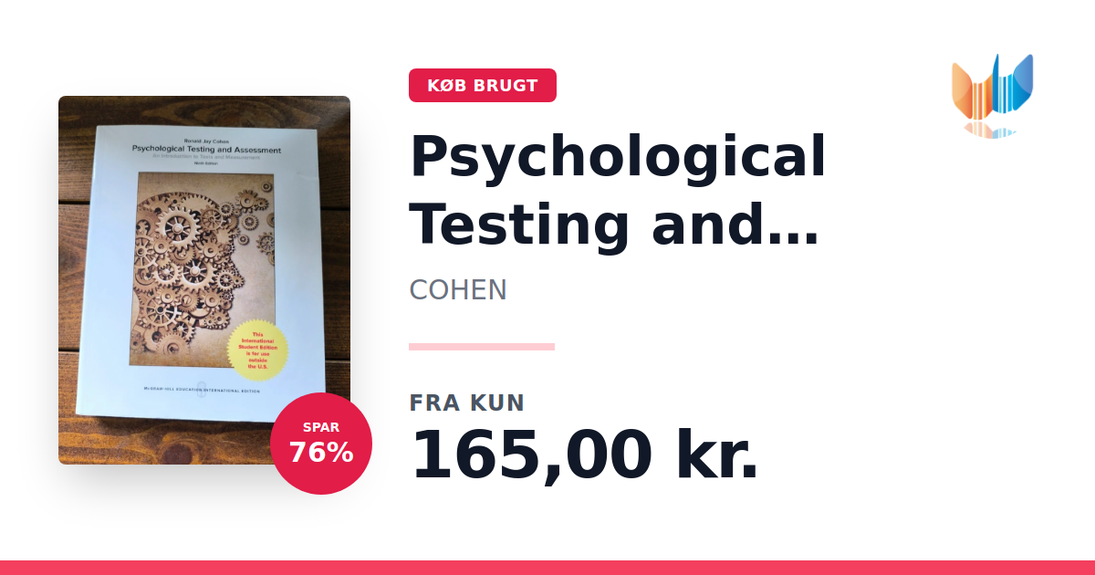 Psychological Testing and Assessment ISE Af Ronald Jay Cohen Studiebog brugt på psykologi-uddannelsen "Psychological Testing and Assessment presents students with a solid grounding in psychometrics and the world of testing and assessment. The book distinguishes itself through its logical organization and many pedagogical aids, including the "Meet an Assessment Professional" feature in every chapter that highlights the works of important academics and practitioners in the field. "