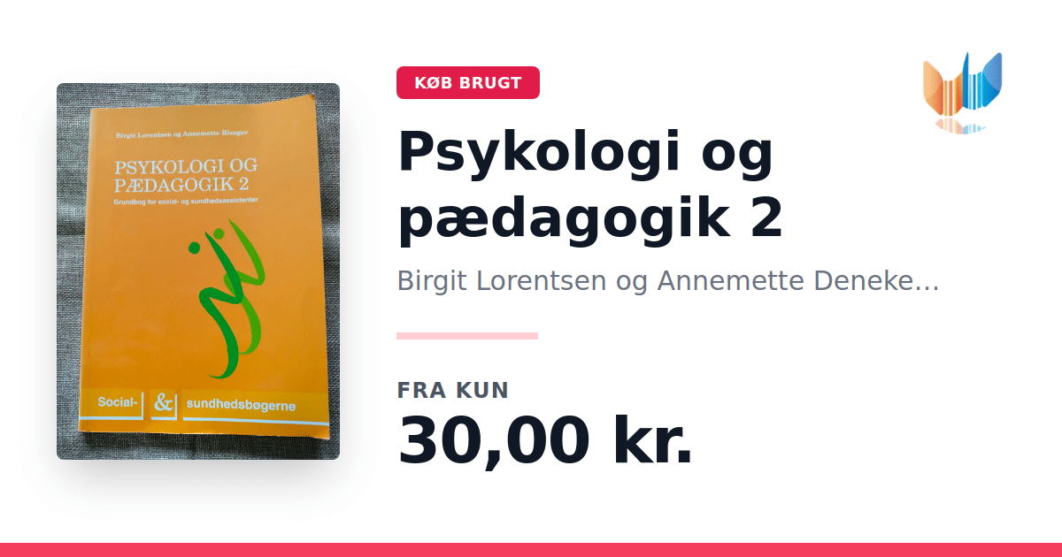 Lige nu kan du købe "Psykologi og pædagogik 2" af Birgit Lorentsen og Annemette Deneke Risager til kun 30,00 kr. Bogen du ser her er brugt, og i god stand. Vi har i øjeblikket kun et enkelt eksemplar til salg af "Psykologi og pædagogik 2", så slå til mens du kan!