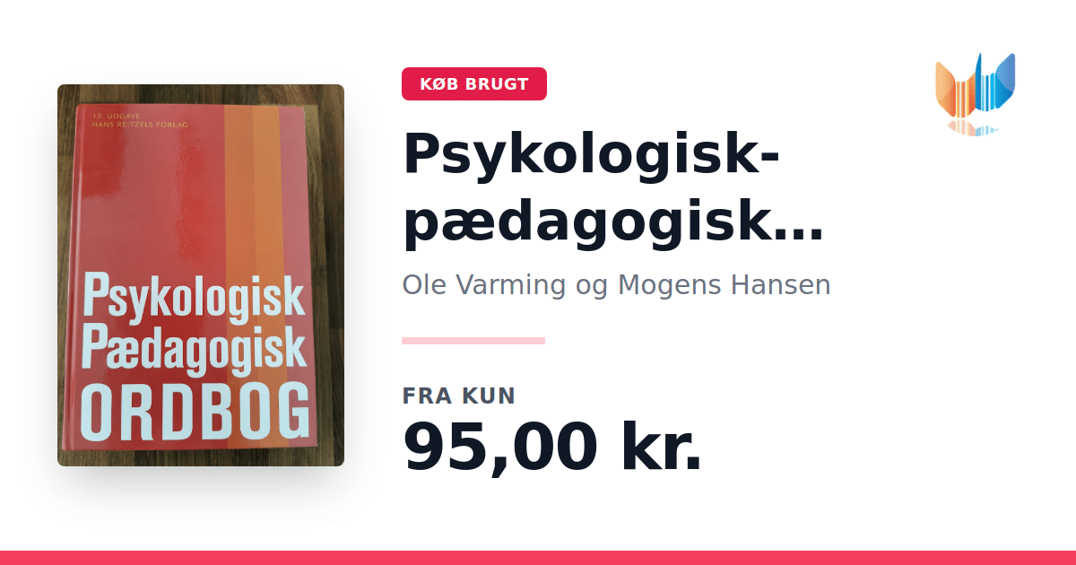 Lige nu kan du købe "Psykologisk-pædagogisk ordbog" af Ole Varming og Mogens Hansen til kun 95,00 kr. Bogen du ser her er brugt, og i perfekt stand. Vi har i øjeblikket 6 eksemplarer til salg af "Psykologisk-pædagogisk ordbog", så husk at se de forskellige udgaver.