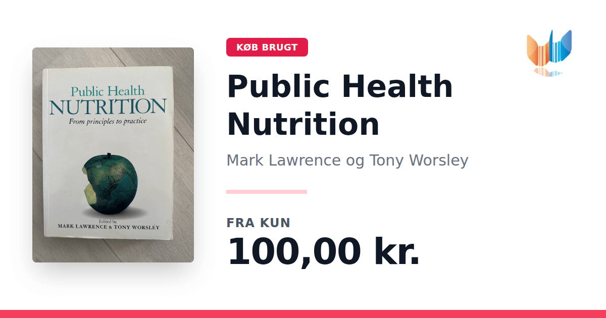Lige nu kan du købe "Public Health Nutrition" af Mark Lawrence og Tony Worsley til kun 100,00 kr. Bogen du ser her er brugt, og i god stand. Vi har i øjeblikket kun et enkelt eksemplar til salg af "Public Health Nutrition", så slå til mens du kan!