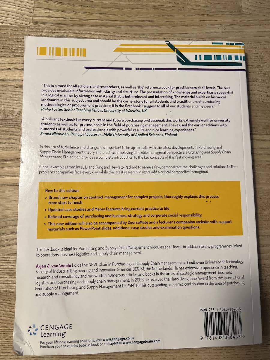 Det hastigt skiftende forretningsmiljø kræver løbende opdatering i Purchasing and Supply Chain Management. Med et fleksibelt ledelsesperspektiv præsenterer værket centrale begreber og praksisser i denne dynamiske disciplin. Bogen forener teori og praksis for at give et solidt fundament til beslutningstagning i komplekse forsyningskæder. Globale cases fra Intel, Li and Fung og Hewlett-Packard belyser daglige udfordringer og effektive løsninger, mens de nyeste forskningsindsigter tilføjer et kritisk perspektiv gennem hele bogen. Studerende og praktikere får konkrete redskaber til at navigere i et globalt marked under pres.