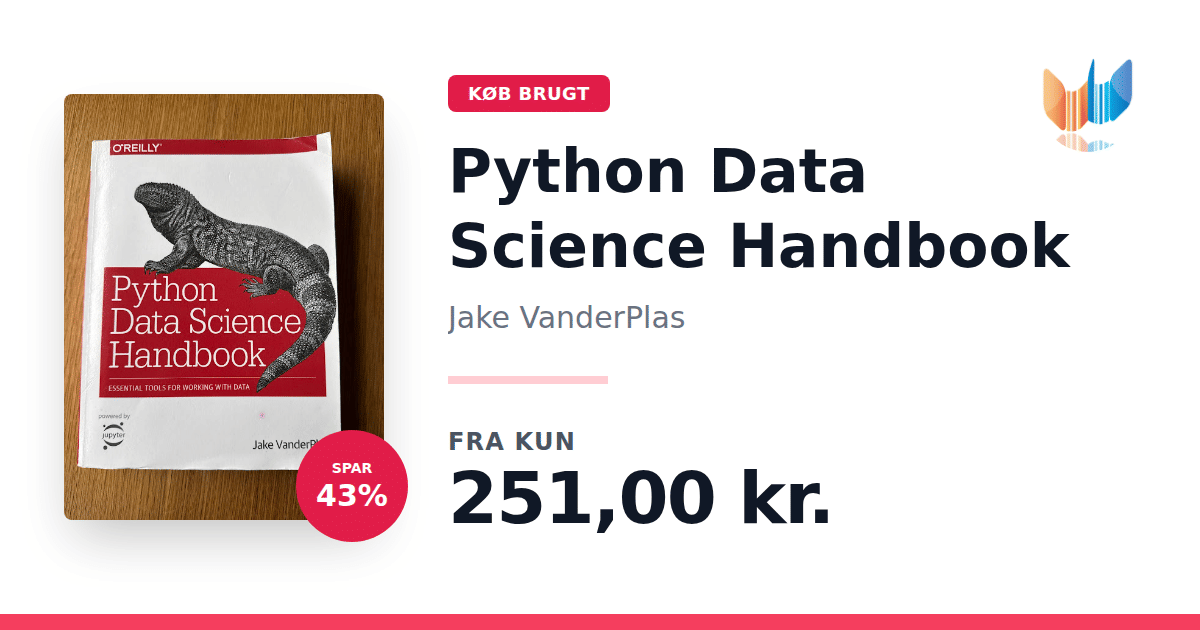 Lige nu kan du købe "Python Data Science Handbook" af Jake VanderPlas til kun 251,00 kr. Du sparer hele 43% af nyprisen! Bogen du ser her er brugt, og i perfekt stand. Vi har i øjeblikket kun et enkelt eksemplar til salg af "Python Data Science Handbook", så slå til mens du kan!