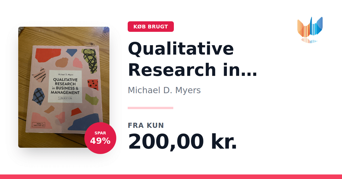 Lige nu kan du købe "Qualitative Research in Business and Management" af Michael D. Myers til kun 200,00 kr. Du sparer hele 49% af nyprisen! Bogen du ser her er brugt, og i god stand. Vi har i øjeblikket kun et enkelt eksemplar til salg af "Qualitative Research in Business and Management", så slå til mens du kan!