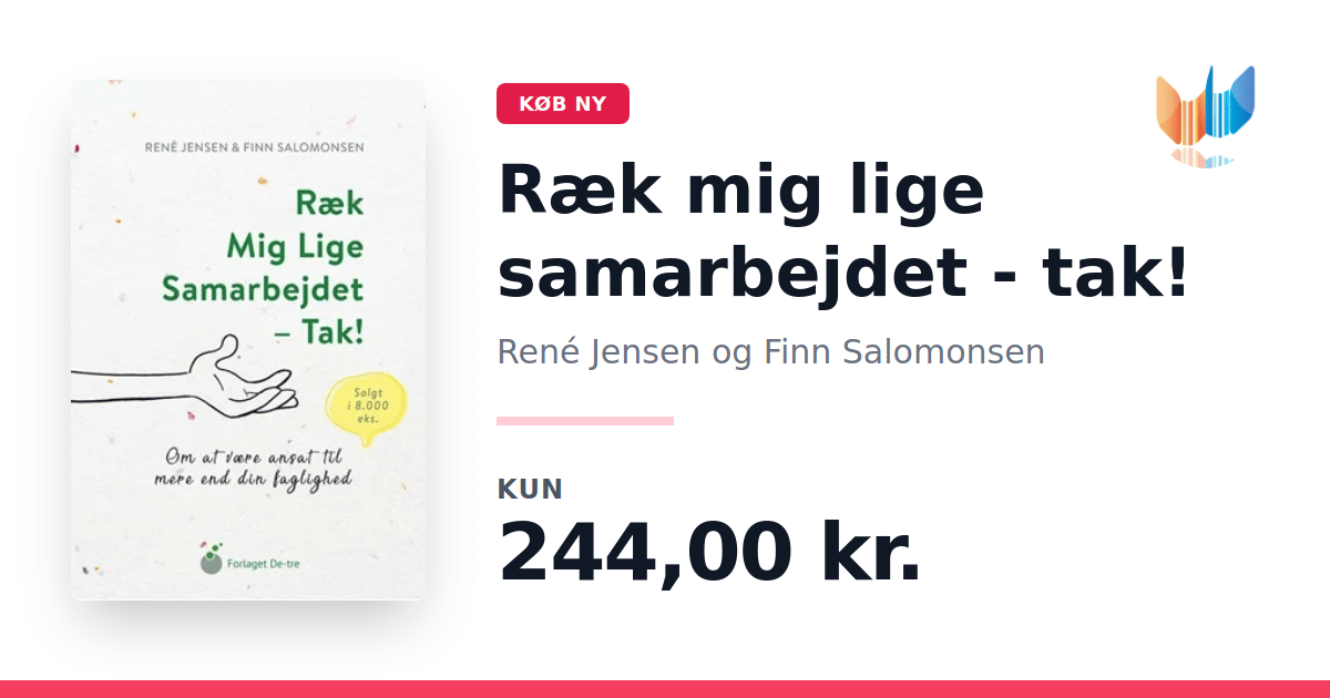 FAGLIGHED ER KUN HALVT SÅ GODT Som ansat er din kernekompetence vigtig, men suveræne resultater opstår først, når faglighed møder solidt samarbejde. Det er i samspillet mellem dine evner og kollegers indsats, at der skabes reel værdi - både for de mennesker, I servicerer, og for jeres egen arbejdsglæde. I 2. udgave fra 2021 af Ræk mig lige samarbejdet - tak! viser René Jensen og Finn Salomonsen, hvordan du aktivt kan bidrage til et højtydende, professionelt teamwork. Samarbejde er ikke noget, der bare opstår; det skabes bevidst af ledere og medarbejdere i fællesskab. Bogen dykker ned i de egenskaber, som samarbejdet hviler på, og giver konkrete anvisninger til, hvordan du udnytter råstoffet samarbejde til at løfte både opgaver og relationer. Undervejs får du indsigt i, hvorfor samarbejdet altid kan - og skal - udvikles. OM FORFATTERNE René Jensen og Finn Salomonsen har siden 1998 sammen med Michael Sandborg drevet konsulentvirksomheden De-tre. Gennem coaching, rådgivning, supervision, temadage, konflikthåndtering, foredrag og lederuddannelser har de hjulpet over 25.000 ledere og medarbejdere - især i offentlige organisationer med fokus på menneskearbejde - med at gøre komplekse udfordringer både enkle og håndterbare.