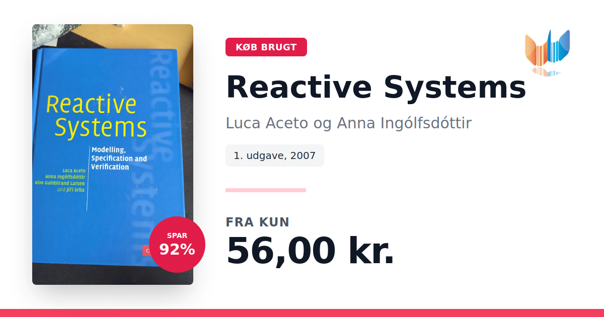 Lige nu kan du købe "Reactive Systems" af Luca Aceto og Anna Ingólfsdóttir til kun 56,00 kr. Du sparer hele 92% af nyprisen! Bogen du ser her er brugt, og i god stand. Vi har i øjeblikket kun et enkelt eksemplar til salg af "Reactive Systems", så slå til mens du kan!