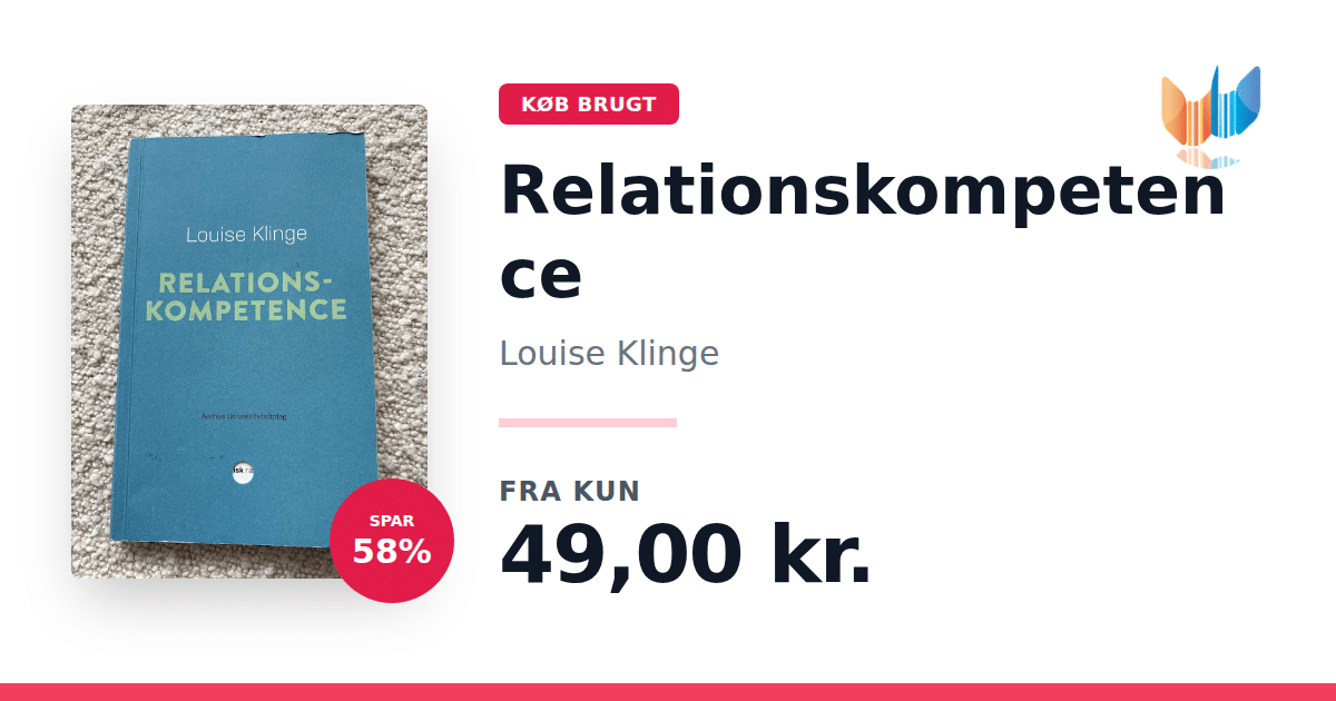 Lige nu kan du købe "Relationskompetence" af Louise Klinge til kun 49,00 kr. Du sparer hele 58% af nyprisen! Bogen du ser her er brugt, og i god stand. Vi har i øjeblikket kun et enkelt eksemplar til salg af "Relationskompetence", så slå til mens du kan!