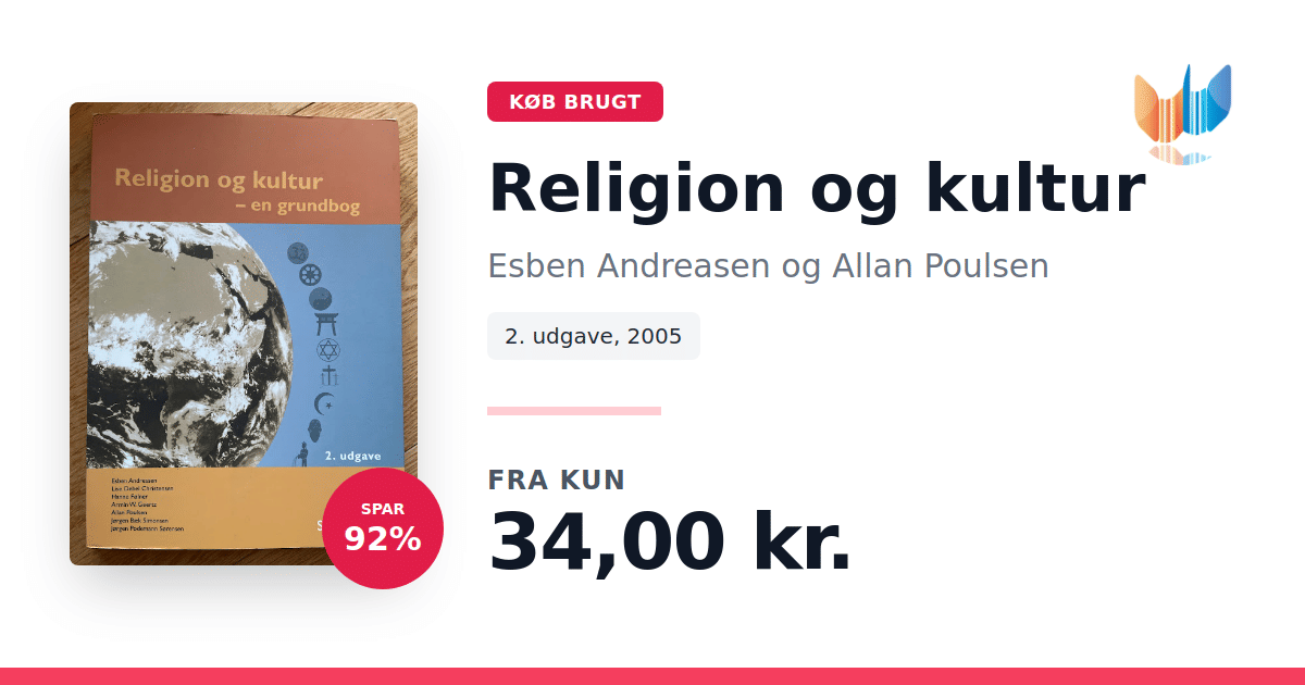 Lige nu kan du købe "Religion og kultur" af Esben Andreasen og Allan Poulsen til kun 34,00 kr. Du sparer hele 92% af nyprisen! Bogen du ser her er brugt, og i god stand. Vi har i øjeblikket kun et enkelt eksemplar til salg af "Religion og kultur", så slå til mens du kan!