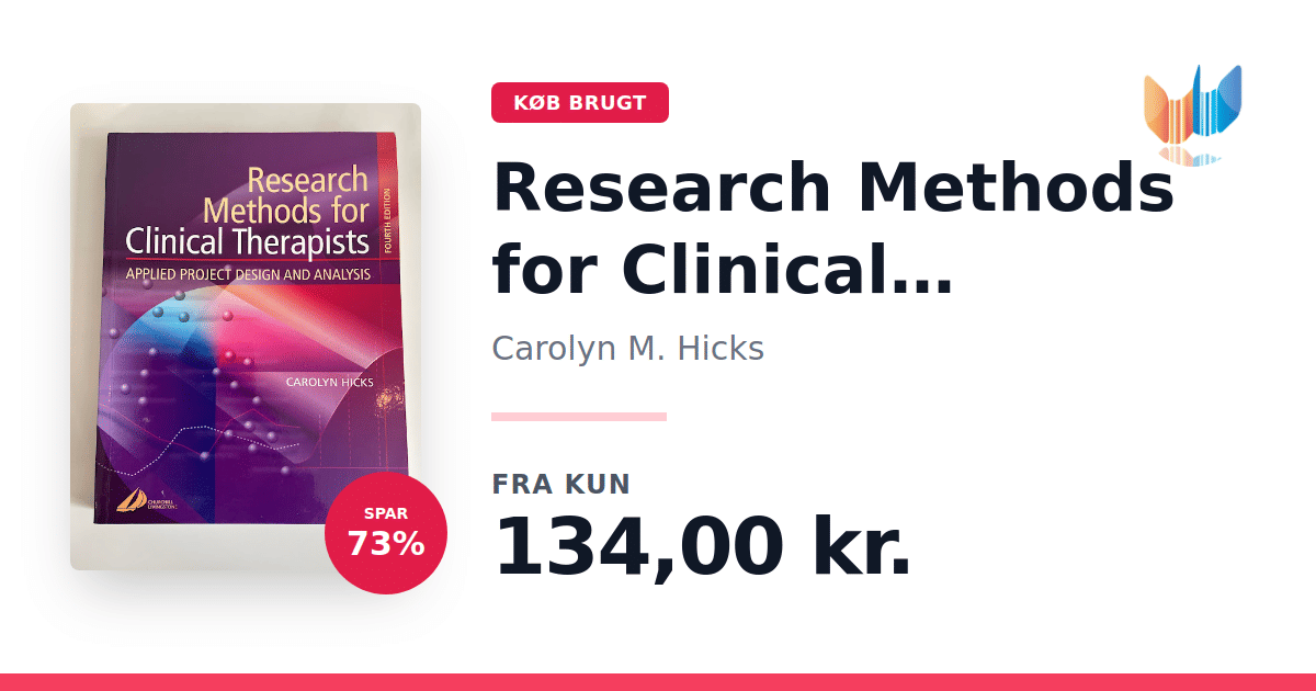 Lige nu kan du købe "Research Methods for Clinical Therapists" af Carolyn M. Hicks til kun 134,00 kr. Du sparer hele 73% af nyprisen! Bogen du ser her er brugt, og i perfekt stand. Vi har i øjeblikket kun et enkelt eksemplar til salg af "Research Methods for Clinical Therapists", så slå til mens du kan!