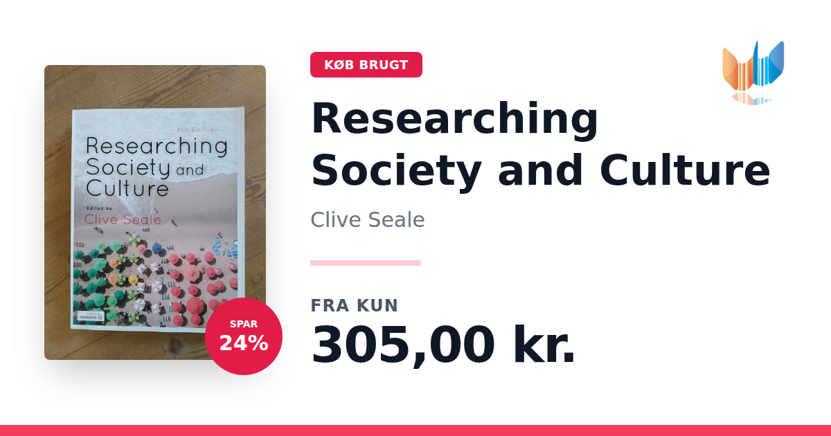 Lige nu kan du købe "Researching Society and Culture" af Clive Seale til kun 305,00 kr. Du sparer hele 24% af nyprisen! Bogen du ser her er brugt, og i perfekt stand. Vi har i øjeblikket kun et enkelt eksemplar til salg af "Researching Society and Culture", så slå til mens du kan!