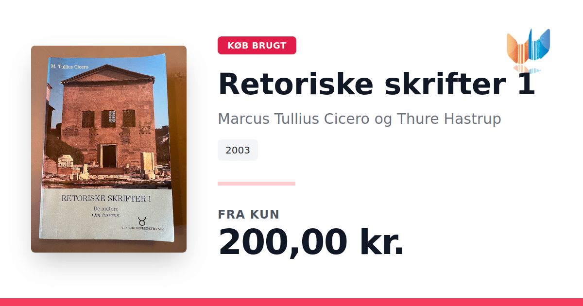 Lige nu kan du købe "Retoriske skrifter 1" af Marcus Tullius Cicero og Thure Hastrup til kun 200,00 kr. Bogen du ser her er brugt, og i god stand. Vi har i øjeblikket kun et enkelt eksemplar til salg af "Retoriske skrifter 1", så slå til mens du kan!