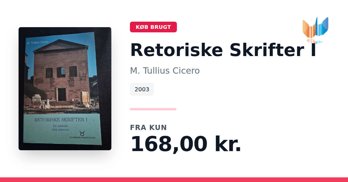Lige nu kan du købe "Retoriske Skrifter I" af M. Tullius Cicero til kun 168,00 kr. Bogen du ser her er brugt, og i god stand. Vi har i øjeblikket kun et enkelt eksemplar til salg af "Retoriske Skrifter I", så slå til mens du kan!