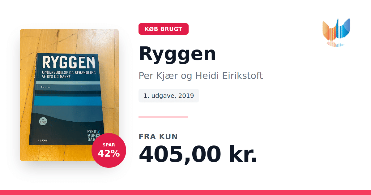Med udgivelsen af første udgave af Ryggen præsenterer forfatterne Per Kjær, Heidi Eirikstoft, Flemming Enoch og Per Lind en grundig og lettilgængelig gennemgang af undersøgelse og behandling af ryg og nakke. Bogen bygger på en solid evidensbase og kombinerer den nyeste forskning med mange års klinisk erfaring. Den teoretiske gennemgang understøttes af veludvalgte cases, som tydeliggør overgangen fra teori til praksis. Fokus ligger på en helhedsorienteret forståelse af ryg- og nakkebesvær – fra biomekaniske analyser og strategier til bio-psykosociale overvejelser og stress- samt smertemekanismer. Denne tilgang giver et nuanceret billede af, hvordan forskellige behandlingsstrategier kan anvendes til patienter med langvarige eller potentielt langvarige problemer. Ryggen henvender sig både til fysioterapeutstuderende og til den erfarne kliniker, der løbende søger opdateret og anvendelig viden på området.