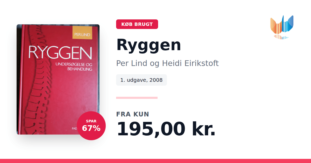 Lige nu kan du købe "Ryggen" af Per Lind og Heidi Eirikstoft til kun 195,00 kr. Du sparer hele 67% af nyprisen! Bogen du ser her er brugt, og i god stand. Vi har i øjeblikket 2 eksemplarer til salg af "Ryggen", så husk at se de forskellige udgaver.