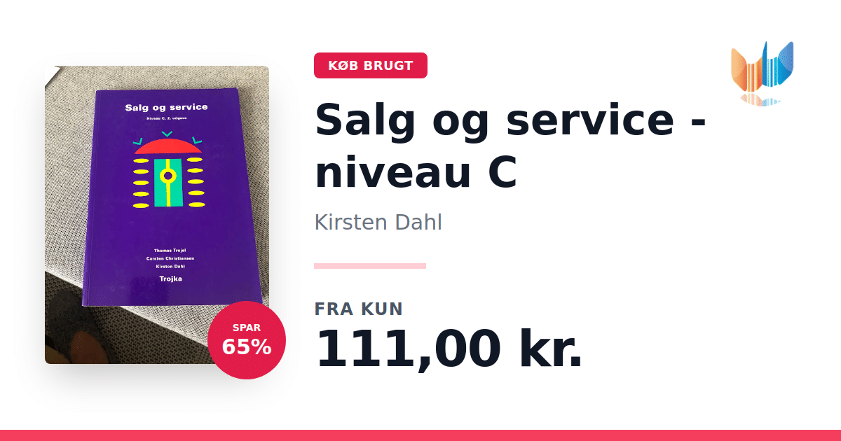 Salg og service – niveau C er et nøje udformet undervisningsmateriale, der dækker grundfaget og henvender sig til elever, som har valgt niveau C fra starten. Materialet er skrevet i et sammenhængende forløb, hvor der er lagt vægt på et elevvenligt sprog og et interessevækkende layout, som alle bidrager til en engagerende undervisning. Med en bred vifte af praktiske eksempler og et rigt opgavesæt får eleverne mulighed for at holde fokus på fagets centrale problemstillinger. Den velafprøvede opgavesamling støtter den pædagogiske proces og sikrer, at lærebogen suppleres med opgaver, der både perspektiverer og udbygger stoffet. Udgave 2, fra Trojka, er udgivet i 2000 og byder på 298 sider fyldt med relevant og tidssvarende indhold til undervisningsforløbet.