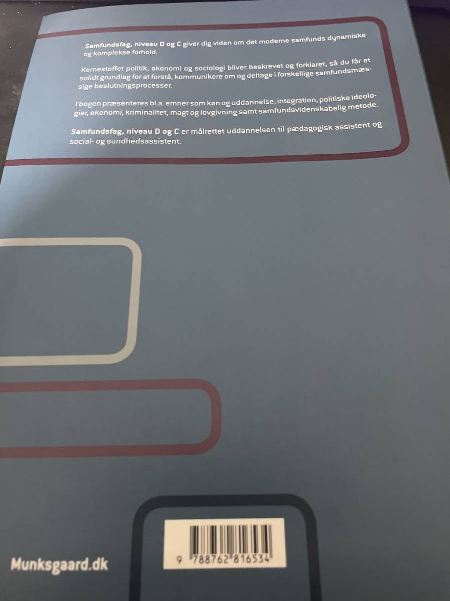 "Samfundsfag. Niveau D og C (med iBog)" er en grundlæggende lærebog, der henvender sig til studerende på uddannelsen til pædagogisk assistent. Bogen dykker ned i vigtige samfundsvidenskabelige emner som politik, økonomi og sociologi, der belyser, hvordan det moderne samfund fungerer. Med en bred dækning af temaer som køn, integration, kriminalitet, lovgivning og samfundsvidenskabelig metode, giver den et solidt fundament for at forstå og analysere de komplekse sociale sammenhænge. Bogen, udgivet af Gyldendal i 2017 og med forfatterne Peter Lind, Bjørn Bue Houmand og Rasmus Christensen bag indholdet, tilbyder både en trykt version og en tilhørende digital udgave (iBog). Den digitale version beriger læseoplevelsen med praktiske funktioner som søgefunktion, mulighed for at tage noter og supplerende materiale, der understøtter læringen undervejs i skoleåret og som et værdifuldt opslagsværk til fordybelse.