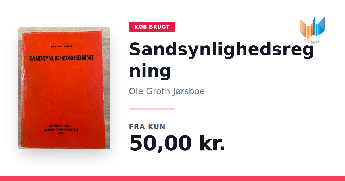 Lige nu kan du købe "Sandsynlighedsregning" af Ole Groth Jørsboe til kun 50,00 kr. Bogen du ser her er brugt, og i god stand. Vi har i øjeblikket kun et enkelt eksemplar til salg af "Sandsynlighedsregning", så slå til mens du kan!