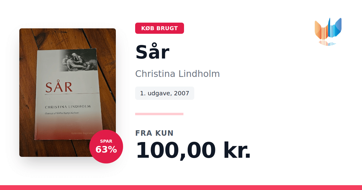Lige nu kan du købe "Sår" af Christina Lindholm til kun 100,00 kr. Du sparer hele 63% af nyprisen! Bogen du ser her er brugt, og i perfekt stand. Vi har i øjeblikket kun et enkelt eksemplar til salg af "Sår", så slå til mens du kan!