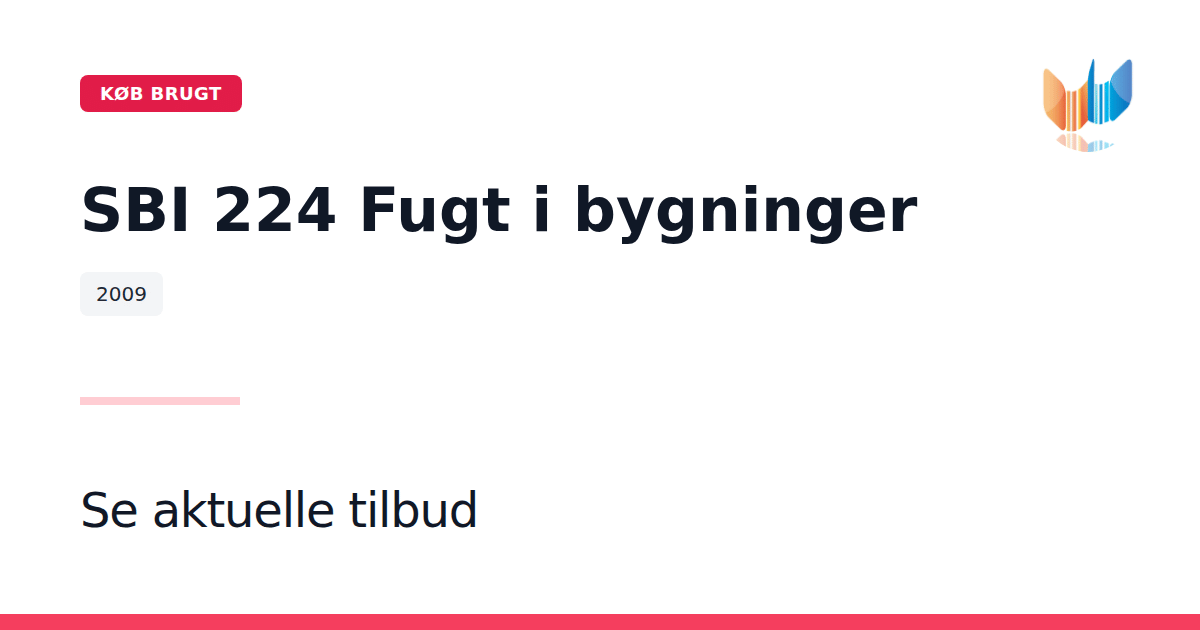 SBI 224 Fugt i bygninger er en vejledende publikation, der giver et solidt grundlag for at håndtere fugtrelaterede udfordringer i både nybyggeri og renoveringsprojekter. Bogen byder på en gennemgang af luftfugtighed, materialernes fugtbalance samt metoder til beregning af fugttransport. Vejledningen retter sig mod projekterende, rådgivere og udførende og gør det muligt at evaluere en bred vifte af konstruktioner ud over de eksempler, der præsenteres. Desuden indeholder den praktiske eksempler på udformning af konstruktioner i kældre, krybekældre, terrændæk, ydervægge, vinduer og tage, samt hvordan man kan afhjælpe eksisterende fugtskader.
