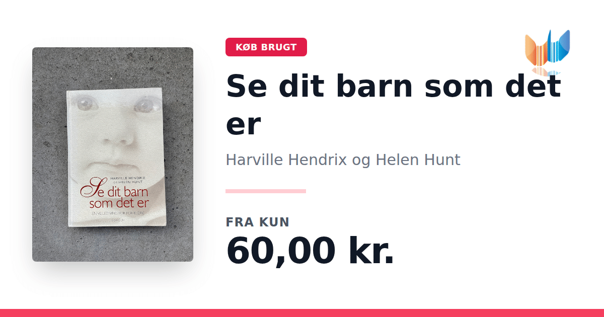 Lige nu kan du købe "Se dit barn som det er" af Harville Hendrix og Helen Hunt til kun 60,00 kr. Bogen du ser her er brugt, og i perfekt stand. Vi har i øjeblikket kun et enkelt eksemplar til salg af "Se dit barn som det er", så slå til mens du kan!