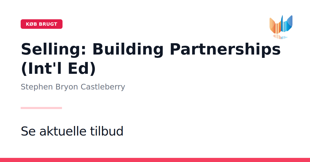 Selling: Building Partnerships, 9. udgave (2013) er fortsat den mest innovative lærebog i salg med sit unikke fokus på rollespil og udvikling af partnerkompetencer - uundværlige færdigheder for alle forretningsprofessionelle. Forfatterne Castleberry og Tanner understreger gennem hele bogen behovet for, at sælgere er fleksible og evner at tilpasse deres salgsstrategier til kundens behov, sociale stil og relationelle krav. Den praktiske tilgang giver eksempler på, hvordan man skaber varige partnerskaber og håndterer forskellige købsadfærd. Desuden byder teksten på en grundig gennemgang af, hvordan effektiv salgsledelse og karriereudvikling opnås gennem omhyggelig planlægning og løbende læring. Den opdaterede 9. udgave sikrer, at indholdet stadig er relevant i dag, præcis som det var for tyve år siden.