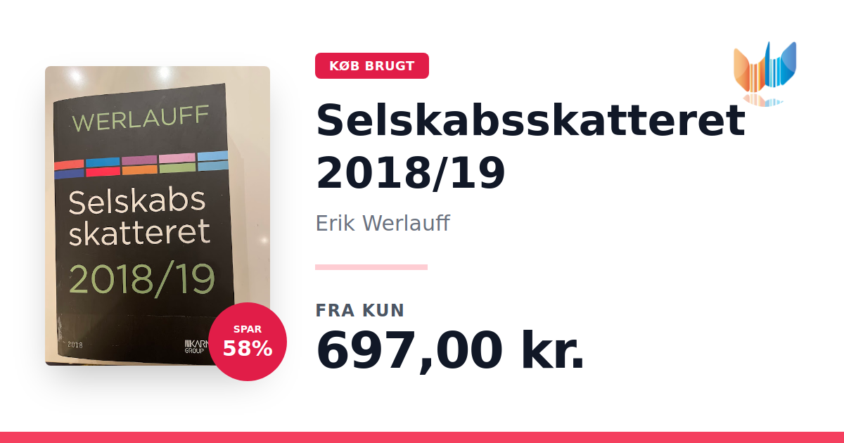 Lige nu kan du købe "Selskabsskatteret 2018/19" af Erik Werlauff til kun 697,00 kr. Du sparer hele 58% af nyprisen! Bogen du ser her er brugt, og i god stand. Vi har i øjeblikket kun et enkelt eksemplar til salg af "Selskabsskatteret 2018/19", så slå til mens du kan!