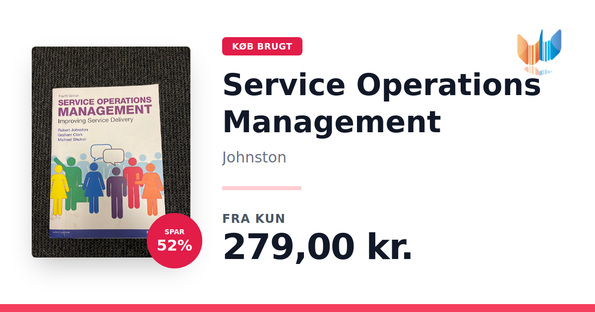 Service Operations Management: Improving Service Delivery - 4. udgave (2012) af Johnston er en internationalt anerkendt lærebog, der henvender sig både til studerende og praktikere med ansvar for servicevirksomheders daglige drift. Bogen præsenterer en balanceret indføring i serviceoperationers teori og praksis og bygger videre på kerneprincipperne i operations management. Den engelsksprogede paperback-udgave på 488 sider giver en detaljeret gennemgang af de beslutninger, ledere står over for, når de skal styre ressourcer, planlægge kapacitet og sikre en effektiv og værdiskabende serviceleverance. Med konkrete eksempler og modeller viser Johnston, hvordan man kan optimere processer, forbedre kvalitet og øge kundetilfredsheden i alle led af servicekæden.