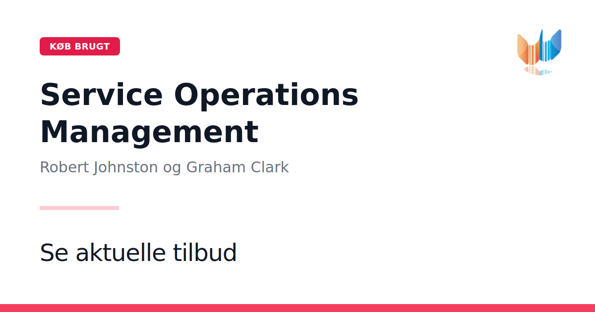 Service Operations Management: Improving Service Delivery af Robert Johnston og Graham Clark er en grundig introduktion til de operationelle udfordringer, der præger servicebranchen. Bogen giver et solidt overblik over, hvordan serviceprocesser kan designes, styres og forbedres, uanset om man arbejder med turisme, fritidssektoren eller erhvervsrelaterede ydelser. Med sit klare fokus på både teori og praksis henvender værket sig til studerende på bachelor- og kandidatniveau samt ledere og konsulenter, der ønsker at optimere deres serviceleverancer. Gennem eksempler og cases demonstreres, hvordan man kan skabe værdi for kunder og samtidig sikre effektiv ressourceudnyttelse. Denne engelsksprogede udgave fra 2008 tæller 556 sider og udfolder alle faser i serviceprocessen uden at lade marketing stå alene. I stedet får læseren et balanceret syn på serviceledelse, fra efterspørgselsstyring til kvalitetskontrol og kapacitetsplanlægning. Service Operations Management er et uundværligt redskab for alle, der ønsker at styrke deres kompetencer inden for service management og løbende forbedre leverancen af professionelle tjenester.